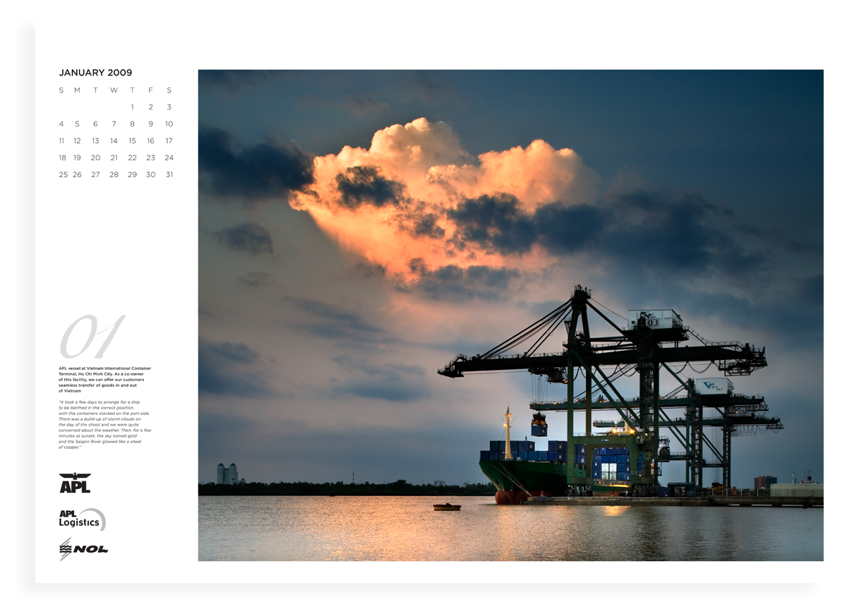 With this particular job, we kept it simple so Jean-Marc’s beautiful shots were the hero in the design. The calendar was a “hot item” among NOL board members around the world.